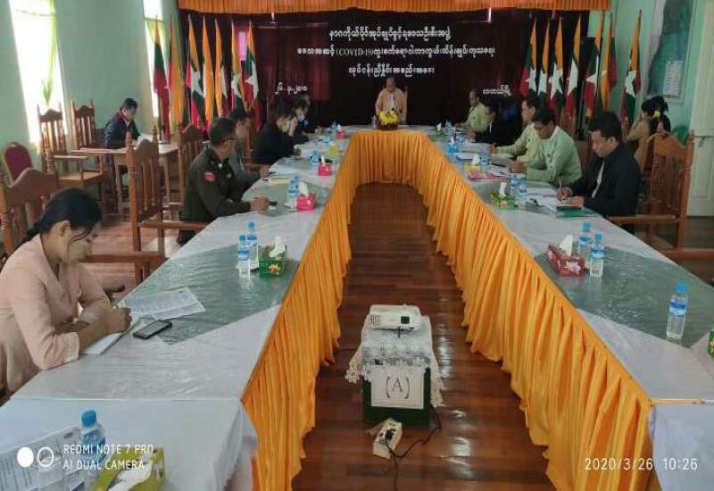 နာဂကိုယ်ပိုင်အုပ်ချုပ်ခွင့်ရဒေသ လဟယ်မြို့တွင် ကိုရိုနာဗိုင်းရပ်စ် (COVID-19) ကူးစက်ရောဂါ ကာကွယ်ထိန်းချုပ်ကုသရေး လုပ်ငန်းညှိနှိုင်း အစည်းဝေးကို ယမန်နေ့ က နာဂဒေသဦးစီးအဖွဲ့ရုံးအစည်း ဝေးခန်းမ၌ ကျင်းပသည်။