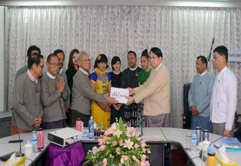 COVID-19 ရောဂါ ကာကွယ်၊ ထိန်းချုပ်၊ ကုသရေးအတွက် မြန်မာနိုင်ငံ ရုပ်ရှင်အစည်းအရုံးနှင့် Forever Group တို့မှ အလှူငွေ ပေးအပ်လှူဒါန်း သည့် အခမ်းအနားကို ယနေ့ မွန်းလွဲပိုင်းက ရန်ကုန်မြို့ ပြည်လမ်းရှိ မြန်မာ့အသံနှင့် ရုပ်မြင်သံကြား အစည်းအဝေးခန်းမ၌ ကျင်းပသည်။