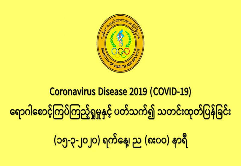 ၁။ ကျန်းမာရေးနှင့်အားကစားဝန်ကြီးဌာနသည် ကမ္ဘာ့နိုင်ငံများတွင် ကူးစက်ပျံ့နှံ့လျက်ရှိသည့် COVID-19 လတ်တလော အသက်ရှူလမ်းကြောင်းဆိုင်ရာ ရောဂါဖြစ်ပွားမှုဖြစ်စဉ်နှင့်ပတ်သက်၍ ရောဂါစောင့်ကြပ်ကြည့်ရှုခြင်း လုပ်ငန်းများအား အပြည်ပြည်ဆိုင်ရာ ဝင်ပေါက်၊ ထွက်ပေါက်ဂိတ် များတွင်လည်းကောင်း၊ ဆေးရုံအခြေပြုအဖြစ်လည်းကောင်း၊ ပြည်သူလူထုအခြေပြု စောင့်ကြပ် ကြည့်ရှုခြင်းလုပ်ငန်းများဖြင့်လည်းကောင်း၊ ပုဂ္ဂလိကဆေးရုံများနှင့် ပူးပေါင်း၍လည်းကောင်း ဆောင်ရွက်လျက်ရှိပါသည်။