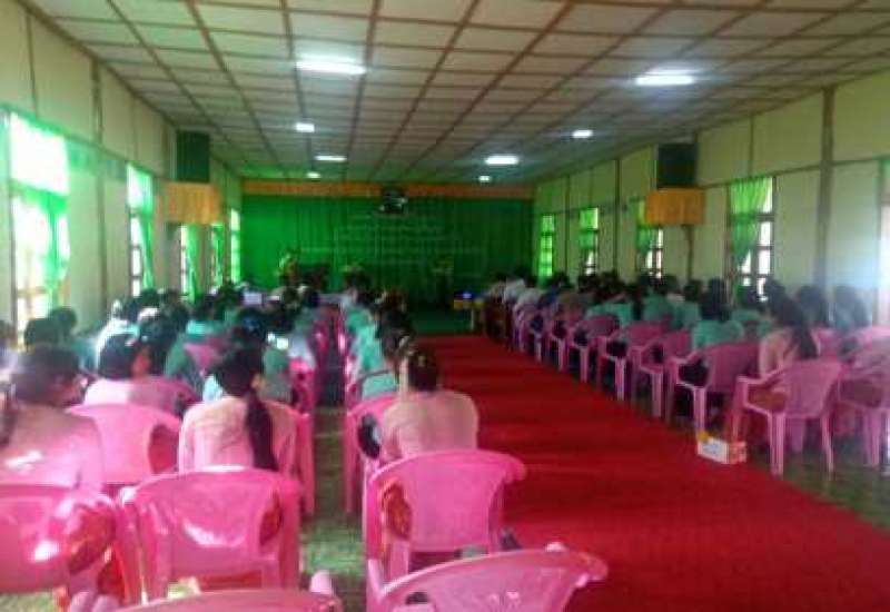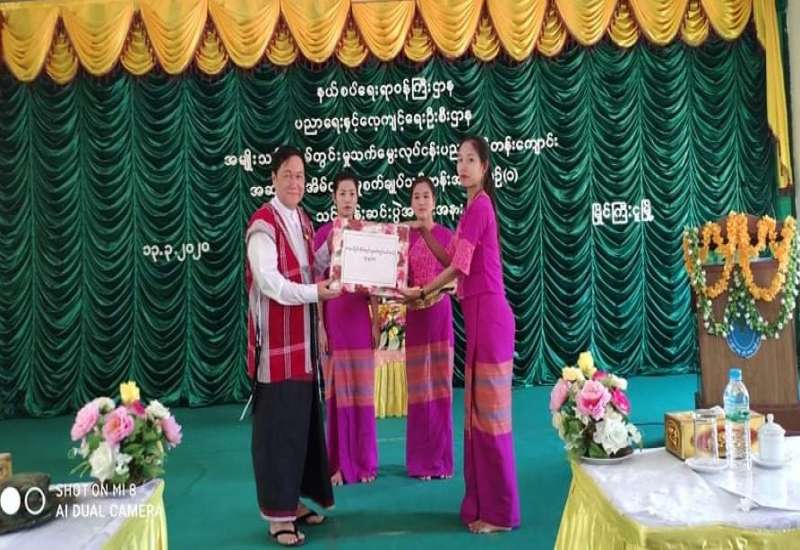 နယ်စပ်ရေးရာဝန်ကြီးဌာန၊ ပညာရေးနှင့်လေ့ကျင့်ရေးဦးစီးဌာန ကရင်ပြည်နယ်ရုံး မြိုင်ကြီးငူမြို့ အမျိုးသမီးအိမ်တွင်းမှု သက်မွေးလုပ်ငန်း ပညာသင်တန်းကျောင်း၏ အဆင့်မြင့်အိမ်တွင်းမှု စက်ချုပ်သင်တန်း အမှတ်စဉ်(၁) သင်တန်းဆင်းပွဲအခမ်းအနားကို ယနေ့ နံနက် (၁၀) နာရီအချိန်တွင် ကျင်းပပြုလုပ်သည်။