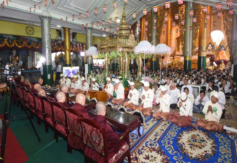 ၂၀၂၀ ပြည့်နှစ် သာသနာတော်ဆိုင်ရာ ဘွဲ့တံဆိပ်တော်များ ဆက်ကပ်ပူဇော်ပွဲ မဟာမင်္ဂလာ အခမ်းအနားကို ယနေ့မွန်းလွဲ ၁ နာရီတွင် နေပြည်တော် ဥပ္ပါတသန္တိစေတီတော်ပရိဝုဏ်အတွင်းရှိ သာသနာ့မဟာဗိမာန်တော်ကြီး၌ ကျင်းပရာ နိုင်ငံတော် သမ္မတ ဦးဝင်းမြင့်နှင့်ဇနီး ဒေါ်ချိုချို၊ နိုင်ငံတော်၏အတိုင် ပင်ခံပုဂ္ဂိုလ် ဒေါ်အောင်ဆန်းစုကြည် တို့ တက်ရောက်ကြည်ညို၍ သာသနာတော်ဆိုင်ရာ ဘွဲ့တံဆိပ် တော်များဆက်ကပ်ပူဇော်ကြသည်။