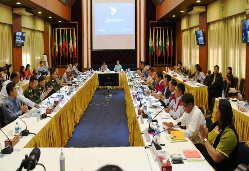 (၈)ကြိမ်မြောက် တစ်နိုင်ငံလုံး ပစ်ခတ်တိုက်ခိုက်မှုရပ်စဲရေး သဘောတူစာချုပ် အကောင် အထည်ဖော်မှုဆိုင်ရာ ညှိနှိုင်းအစည်းအဝေး (JICM) အစည်းအဝေးဆုံးဖြတ် ချက်များ အကောင်အထည်ဖော်ရေးအတွက် အစိုးရကိုယ်စားလှယ်များနှင့် NCA လက်မှတ်ရေးထိုးထား သည့် တိုင်းရင်းသားလက်နက်ကိုင် အဖွဲ့အစည်းကိုယ်စားလှယ်များ (NCA - S EAO)၏ နှစ်ဖက် အလုပ်အဖွဲ့ ညှိနှိုင်းအစည်းအဝေးကို ယနေ့နံနက် ၁၀ နာရီတွင် ရန်ကုန်မြို့ ရွှေလီလမ်းရှိ အမျိုးသားပြန်လည်သင့်မြတ်ရေးနှင့် ငြိမ်းချမ်းရေးဗဟိုဌာန (NRPC)တွင် ဆက်လက် ကျင်းပသည်။