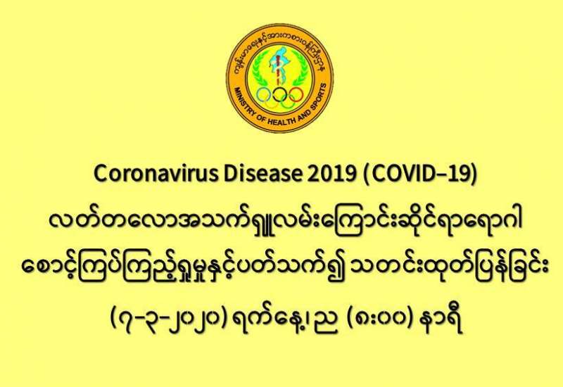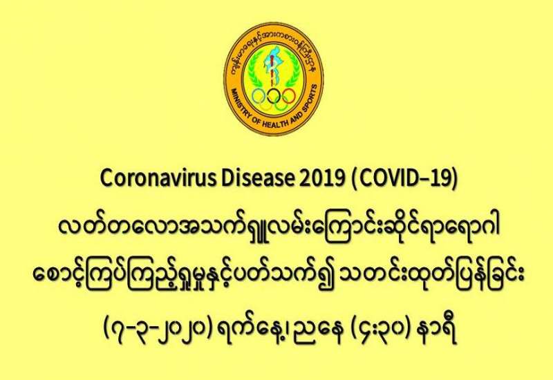 COVID-19 ရောဂါ စောင့်ကြပ်ကြည့်ရှုမှုနှင့်ပတ်သက်၍ သတင်းထုတ်ပြန်ခြင်း (၇-၃-၂၀၂၀) ရက်နေ့၊ ည (၈:၀၀) နာရီ