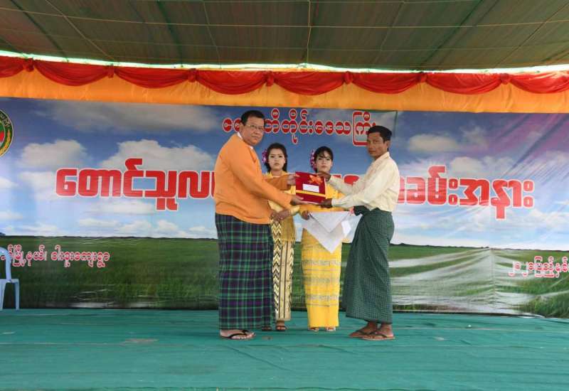 ရှေးဦးစွာ ပြည်ထောင်စုသမ္မတ မြန်မာနိုင်ငံတော် နိုင်ငံတော်သမ္မတ ဦးဝင်းမြင့် ထံမှ တောင်သူလယ်သမားနေ့ အခမ်းအနားသို့ ပေးပို့သော သဝဏ်လွှာအား ဧရာဝတီတိုင်း ဒေသကြီးအစိုးရအဖွဲ့ စိုက်ပျိုးရေး၊ မွေးမြူရေး၊ သယံဇာတနှင့် ပတ်ဝန်းကျင် ထိန်းသိမ်းရေး ဝန်ကြီး ဦးတင်အောင်ဝင်းက ဖတ်ကြားသည်.။