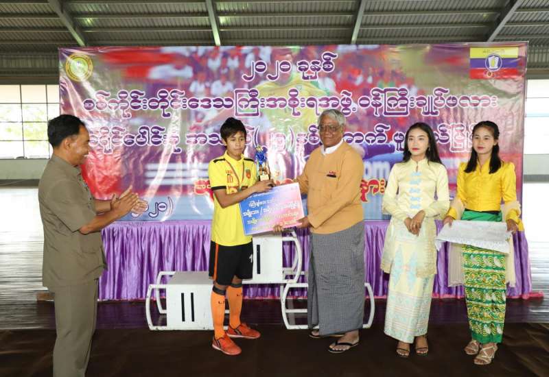၂၀၂၀ ပြည့်နှစ်၊ စစ်ကိုင်းတိုင်းဒေသကြီး အစိုးရအဖွဲ့ဝန်ကြီးချုပ်ဖလား ခရိုင်ပေါင်းစုံ အသက် (၂၅)နှစ် အောက် ဖူဆယ်ပြိုင်ပွဲ ဆုချီးမြှင့်ပွဲအခမ်းအနားကို ယမန်နေ့ ညနေ ၄ နာရီက စစ်ကိုင်းမြို့ နှစ်(၇၀၀)ပြည့် ဖူဆယ်အားကစားရုံ၌ ကျင်းပပြုလုပ်ရာ စစ်ကိုင်းတိုင်းဒေသကြီး အစိုးရအဖွဲ့ဝန်ကြီးချုပ် ဒေါက်တာမြင့်နိုင်၊ တိုင်းဒေသကြီး ဥပဒေချုပ်နှင့်ဇနီး၊ တိုင်း/ခရိုင်/မြို့နယ်အဆင့် ဌာနဆိုင်ရာ အကြီးအကဲများ၊ အားကစားသမားများနှင့် အသင်းခေါင်းဆောင် နည်းပြများ တက်ရောက်ခဲ့သည်။