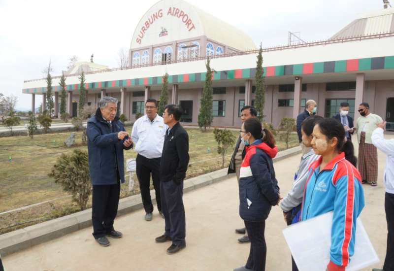 ဂျပန်လေကြောင်းပညာရှင် Strengthening of Civil Aviation Safety Oversight in the Republic of the Union of Myanmar Project မှ Akira HAHRDA ဦးဆောင်သော ပညာရှင်များသည် ချင်းပြည်နယ်အစိုးရအဖွဲ့ဝင် ပြည်နယ် လမ်းပန်းဆက်သွယ်ရေးဝန်ကြီး ဦးရွှေထီးအို၊ ဖလမ်းမြို့နယ် အုပ်ချုပ်ရေးမှူး ဦးကြားအွယ် တို့နှင့်အတူ ယမန်နေ့ နံနက်ပိုင်းက ဆူရ်ဘုန်လေဆိပ် စီမံကိန်းအား ကြည့်ရှုစစ်ဆေးသည်။
