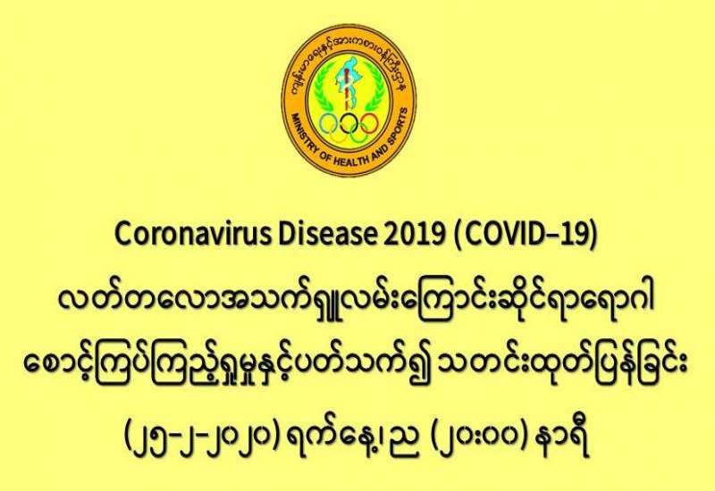 ၁။ ကျန်းမာရေးနှင့်အားကစားဝန်ကြီးဌာနသည် တရုတ်ပြည်သူ့သမ္မတနိုင်ငံနှင့် ကမ္ဘာ့နိုင်ငံအချို့တွင် ကူးစက်ပျံ့နှံ့လျက်ရှိသည့် COVID-19 လတ်တလောအသက်ရှူလမ်းကြောင်းဆိုင်ရာ ရောဂါ ဖြစ်ပွားမှုဖြစ်စဉ်နှင့်ပတ်သက်၍ ရောဂါစောင့်ကြပ်ကြည့်ရှုခြင်း လုပ်ငန်းများအား အပြည်ပြည် ဆိုင်ရာ ဝင်ပေါက်၊ ထွက်ပေါက်ဂိတ်များတွင်လည်းကောင်း၊ ဆေးရုံအခြေပြုအဖြစ် လည်းကောင်း၊ ပြည်သူလူထုအခြေပြု စောင့်ကြပ်ကြည့်ရှုခြင်းလုပ်ငန်းများဖြင့်လည်းကောင်း၊ ပုဂ္ဂလိကဆေးရုံများနှင့် ပူးပေါင်း၍လည်းကောင်း ဆောင်ရွက်လျက်ရှိပါသည်။