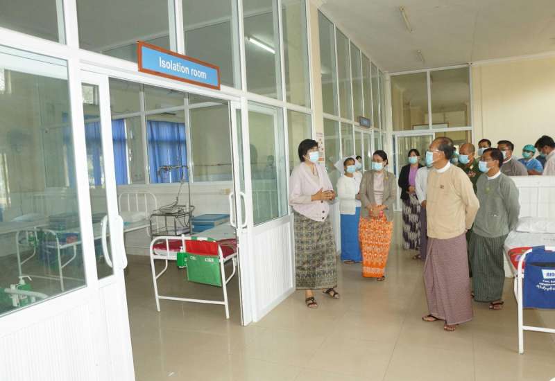 နေပြည်တော်ကောင်စီဥက္ကဋ္ဌ ဒေါက်တာမျိုးအောင်၊ နေပြည်တော်ကောင်စီဝင် ဗိုလ်မှူးကြီး မင်းနောင်နှင့် တာဝန်ရှိသူများသည် ယနေ့ နံနက်(၁၀)နာရီတွင် Coronavirus Disease 2019 (COVID-19) လတ်တလော အသက်ရှုလမ်းကြောင်းဆိုင်ရာရောဂါ တွေ့ရှိလာပါက ထိရောက်စွာကုသမှု ပေးနိုင်ရေးအတွက် နေပြည်တော် ခုတင်(၁၀၀၀)ပြည်သူ့ဆေးရုံကြီး၌ သီးခြားဆေး ကုသဆောင် ပြင်ဆင်ထားရှိမှုအား သွားရောက်စစ်ဆေးကြ သည်။