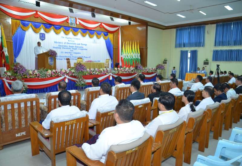 လျှပ်စစ်နှင့်စွမ်းအင်ဝန်ကြီးဌာန၏ ကမ္ဘာ့ဘဏ်ချေးငွေဖြင့် ဆောင်ရွက်လျက် ရှိသည့် အမျိုးသားလျှပ်စစ်ဓာတ်အား ရရှိရေးစီမံကိန်း NEP Phase-2 အတွက် လိုအပ်သော ကွန်ကရစ်တိုင်ဝယ်ယူနိုင်ရန် တင်ဒါအောင်မြင်ခဲ့သော ကုမ္ပဏီ များနှင့် စာချုပ်များ လက်မှတ် ရေးထိုးခြင်းအခမ်းအနားကို ယနေ့မွန်းလွဲ ၁ နာရီတွင် နေပြည်တော်ရှိ လျှပ်စစ်နှင့် စွမ်းအင် ဝန်ကြီးဌာန ရတနာခန်းမ၌ ကျင်းပသည်။