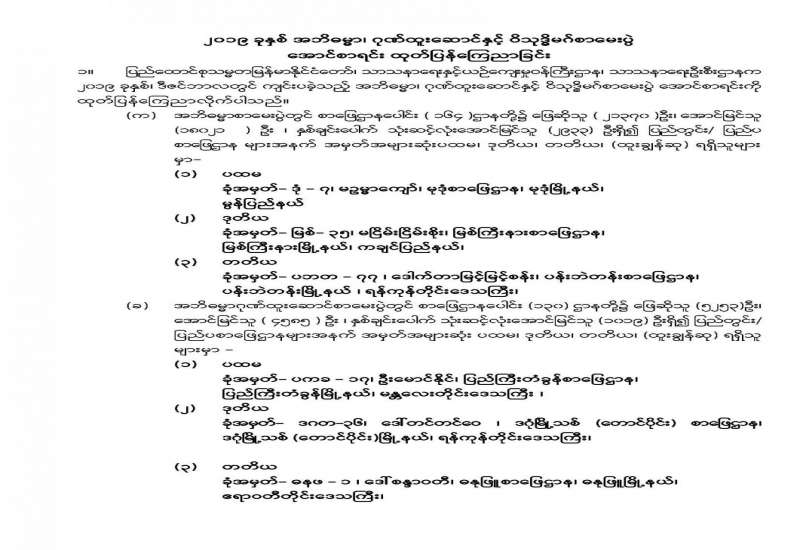 ၂၀၁၉ ခုနှစ် အဘိဓမ္မာ၊ ဂုဏ်ထူးဆောင်နှင့် ဝိသုဒ္ဓိမဂ်စာမေးပွဲ အောင်စာရင်း ထုတ်ပြန်ကြေညာ