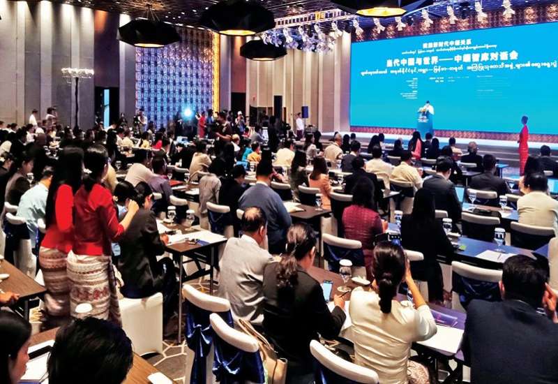 ခေတ်သစ်တွင် မြန်မာ-တရုတ်ဆက်ဆံရေး ပိုမိုနီးကပ်ရင်းနှီးအကျွမ်းတဝင် ရှိစေရေးအတွက် မျက်မှောက်ခေတ် တရုတ်နိုင်ငံနှင့် ကမ္ဘာ-မြန်မာ-တရုတ် အကြံပြုသုတေသီအဖွဲ့များ၏ ဆွေးနွေးပွဲကို ရန်ကုန်မြို့ မင်္ဂလာတောင်ညွန့် မြို့နယ် ကန်ရိပ်သာလမ်းနှင့် ဦးအောင်မြတ်လမ်းထောင့်ရှိ Wyndham Grand Yangon Hotel ၌ ယနေ့နံနက် ၉ နာရီက ပြုလုပ်ခဲ့သည်။