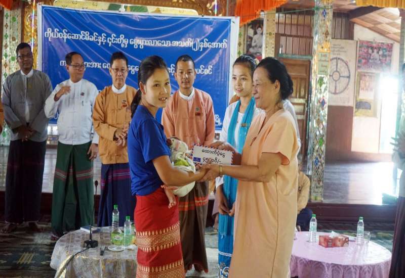 ကရင်ပြည်နယ်အစိုးရအဖွဲ့၊ ပြည်နယ်ဝန်ကြီးချုပ်ဒေါ်နန်းခင်ထွေးမြင့်၊ အစိုးရအဖွဲ့ဝင်ဝန်ကြီးများနှင့် ဌာနဆိုင်ရာ တာဝန်ရှိသူများသည် ယမန်နေ့ နံနက် ၁၁ နာရီခန့်က ကြာအင်းဆိပ်ကြီးမြို့နယ်၊ ကျိုက်ဒုံမြို့ မိတန်သမဂ္ဂ ဘုန်းတော်ကြီး ကျောင်း၌ ကျိုက်ဒုံမြို့ဒေသခံပြည်သူများနှင့်တွေ့ဆုံ၍ ကျိုက်ဒုံမြို့ရှိ အသက်(၈၅)နှစ်နှင့်အထက် သက်ကြီး အဘိုး/အဘွားများ၊ ကိုယ်ဝန်ဆောင်မိခင်များနှင့် အသက်(၂)နှစ်အောက်ကလေးများအား ထောက်ပံ့ငွေများ ပေးအပ်ခဲ့သည်။