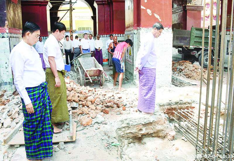 အဆောက်အဦများ ပြန်လည်ပြုပြင်အသုံးပြုရေးနှင့် အသစ်တည်ဆောက်ရေးကြီးကြပ်မှုကော်မတီဥက္ကဋ္ဌ နိုင်ငံတော်စီမံအုပ်ချုပ်ရေးကောင်စီအဖွဲ့ဝင် ဒုတိယဝန်ကြီးချုပ်နှင့် ကာကွယ်ရေးဝန်ကြီးဌာန ပြည်ထောင်စုဝန်ကြီး ဗိုလ်ချုပ်ကြီး မောင်မောင်အေးသည် ပြည်ထောင်စုဝန်ကြီး ဦးအောင်ကျော်ဟိုး၊ ဦးမျိုးသန့်၊ နေပြည်တော်ကောင်စီဥက္ကဋ္ဌ ဦးသန်းထွန်းဦးနှင့်အတူ ယနေ့မွန်းလွဲပိုင်းတွင် ငလျင်ဒဏ်ကြောင့် ထိခိုက်ပျက်စီးခဲ့သည့် နိုင်ငံတော်ပိုင်ရုံးအဆောက်အအုံများနှင့် နိုင်ငံတော်ပိုင်ဝန်ထမ်းအိမ်ရာများသို့သွားရောက်၍ အဆောက်အအုံများ ဖြိုချဖျက်သိမ်းခြင်းလုပ်ငန်းများ ဆောင်ရွက်မှုအခြေအနေများကို ကြည့်ရှုစစ်ဆေးသည်။