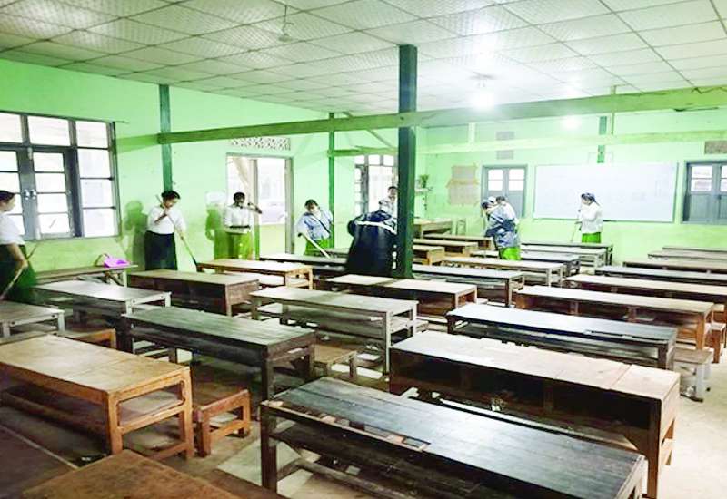 ၂၀၂၅-၂၀၂၆ ပညာသင်နှစ် ကျောင်းဖွင့်ရာသီတွင် ကျောင်းသား ကျောင်းသူများ အဆင်ပြေချောမွေ့စွာ ပညာသင်ကြားနိုင်ရေးနှင့် စာသင်ကျောင်းများ ဥပဓိရုပ်ကောင်းမွန်စေရေးအတွက် တိုင်းဒေသကြီးနှင့် ပြည်နယ်အသီးသီးရှိ အခြေခံပညာကျောင်းများနှင့် ပညာရေးဒီဂရီကောလိပ်များတွင် ကျောင်းပတ်ဝန်းကျင်သန့်ရှင်းသာယာလှပရေးအတွက် နယ်မြေခံတပ်မတော်သားများ၊ ဌာနဆိုင်ရာဝန်ထမ်းများ၊ လူမှုရေးအသင်းအဖွဲ့များနှင့် ဒေသခံပြည်သူများက စုပေါင်းသန့်ရှင်းရေးလုပ်ငန်းများ ဆောင်ရွက်ပေးလျက်ရှိသည်။