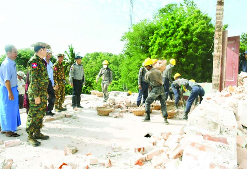 မြန်မာနိုင်ငံတွင် လှုပ်ခတ်ခဲ့သော မန္တလေးငလျင်ကြီးကြောင့် ထိခိုက်ပျက်စီးခဲ့ရသည့် နေရာများ၌ ပြန်လည်ထူထောင်ရေးလုပ်ငန်းများကို အဖွဲ့အစည်းအသီးသီးက ဒေသခံပြည်သူများနှင့် ပူးပေါင်း၍ အင်တိုက်အားတိုက်ကူညီဆောင်ရွက်ပေးလျက်ရှိသည်။