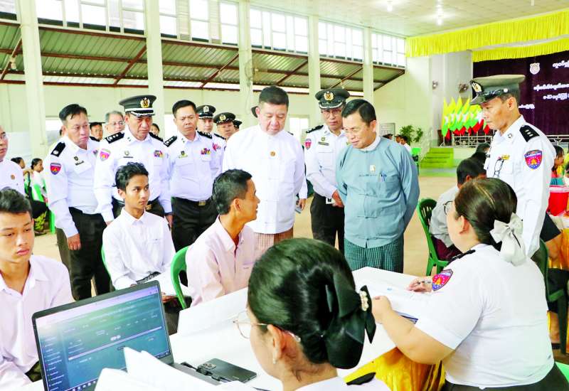 လူဝင်မှုကြီးကြပ်ရေးနှင့် ပြည်သူ့အင်အားဝန်ကြီးဌာန ပြည်ထောင်စုဝန်ကြီး ဦးမြင့်ကြိုင်သည် မွန်ပြည်နယ်ဝန်ကြီးချုပ် ဦးအောင်ကြည်သိန်း၊ တာဝန်ရှိသူများနှင့်အတူ ယမန်နေ့မွန်းလွဲပိုင်းက မော်လမြိုင်မြို့ အမှတ်(၇)အခြေခံပညာအထက်တန်းကျောင်း၌ နိုင်ငံသားစိစစ်ရေးကတ်ပြား မရှိသေးသူများ၊ လဲလှယ်လျှောက်ထားသူ ပြည်သူများကို ပန်းခင်းစီမံချက်အဆင့်(၃)ဖြင့် နိုင်ငံသားကတ်ပြားစိစစ်ဆောင်ရွက်ပေးနေမှုကို လှည့်လည်ကြည့်ရှုကာ ဒေသခံပြည်သူများအား လိုအပ်သည်များ ညှိနှိုင်းဆောင်ရွက်ပေးသည်။