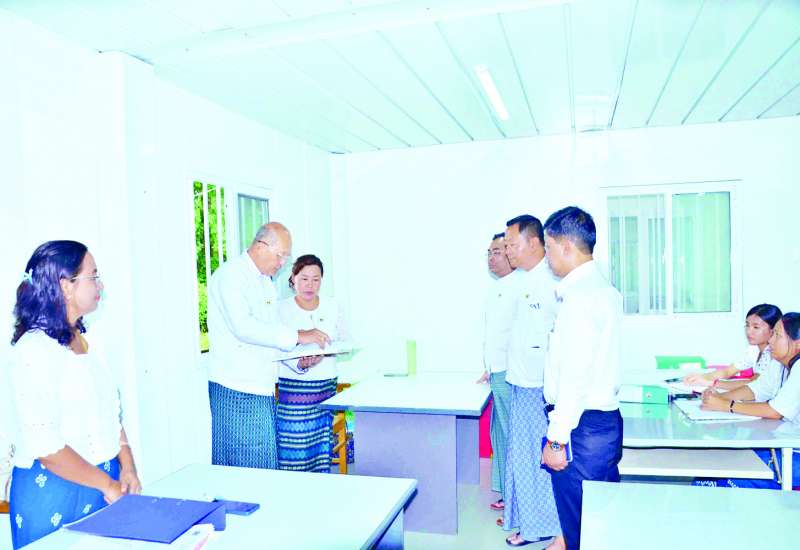 အားကစားနှင့် လူငယ်ရေးရာဝန်ကြီးဌာန ပြည်ထောင်စုဝန်ကြီး Jeng Phang နော်တောင်သည် ဒုတိယဝန်ကြီးများဖြစ်ကြသည့် ဦးထိန်လင်း၊ ဦးဇင်မင်းထက်၊ ဌာနဆိုင်ရာ တာဝန်ရှိသူများနှင့်အတူ ယနေ့နံနက်ပိုင်းတွင် Basha တည်ဆောက်ပြီးစီးမှုနှင့် Prefabricated Offices တွင် ဝန်ထမ်းများ ရုံးလုပ်ငန်းဆောင်ရွက်နေမှုကို လှည့်လည်ကြည့်ရှုစစ်ဆေးသည်။