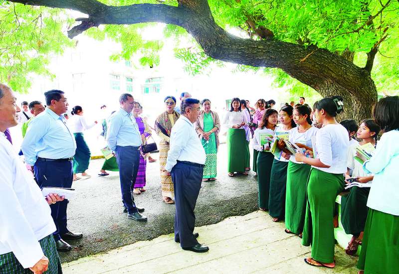 ပညာရေးဝန်ကြီးဌာန ဒုတိယဝန်ကြီး ဒေါက်တာဇော်မြင့်သည် တာဝန်ရှိသူများနှင့်အတူ ယနေ့နံနက်ပိုင်းတွင် Naypyitaw State Academy ၌ ဆေးပညာမဟာဌာနမှ ဆရာ ဆရာမများနှင့်တွေ့ဆုံကာ လုပ်ငန်းဆောင်ရွက်မှုအခြေအနေများကို ဆွေးနွေးပြီး လက်တွေ့ခန်းများ၌ လက်တွေ့ခန်းသုံးပစ္စည်းများ ဖြည့်ဆည်းထားရှိမှုကို ကြည့်ရှုစစ်ဆေးသည်။