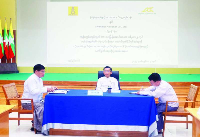 စွမ်းအင်ဝန်ကြီးဌာန မြန်မာ့ရေနံနှင့်သဘာဝဓာတ်ငွေ့လုပ်ငန်းနှင့် Myanmar Kinsanar Co.,Ltd. တို့အကြား ကုန်းတွင်းလုပ်ကွက် IOR-6 (မြန်အောင်ဒေသ) ဧရိယာ-၂ တွင် ရေနံအထွက်တိုးရေးလုပ်ငန်းများ ဆောင်ရွက်နိုင်ရန်အတွက် တိုးတက်ထွက်ရှိလာသော ရေနံထုတ်လုပ်မှုအပေါ် ခွဲဝေခံစားသည့် စာချုပ်လက်မှတ်ရေးထိုးပွဲအခမ်းအနားကို စွမ်းအင်ဝန်ကြီးဌာန နေပြည်တော်တွင် ယနေ့နံနက်ပိုင်းကကျင်းပရာ ပြည်ထောင်စုဝန်ကြီး၊ ဒုတိယဝန်ကြီး၊ ပြည်ထောင်စုဝန်ကြီး ရုံးညွှန်ကြားရေးမှူးချုပ်၊ ဦးစီးဌာန/လုပ်ငန်းများမှ ညွှန်ကြားရေးမှူးချုပ်များ၊ ဦးဆောင်ညွှန်ကြားရေးမှူးများ၊ ဌာနဆိုင်ရာအကြီးအကဲများနှင့် Myanmar Kinsanar Co.,Ltd. မှ တာဝန်ရှိသူများ တက်ရောက်သည်။