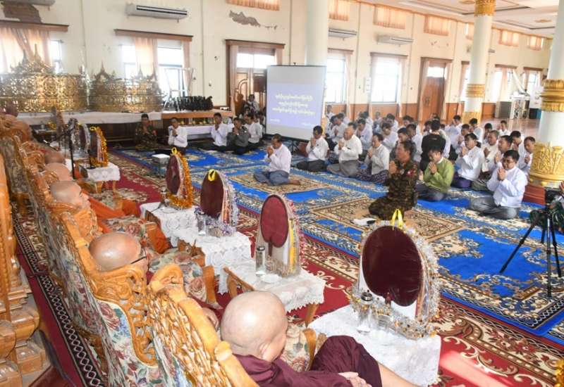 ငလျင်ဒဏ်ကြောင့် ပြိုကျပျက်စီးခဲ့သော စစ်ကိုင်းတိုင်းဒေသကြီး၊ စစ်ကိုင်းမြို့၊ စစ်ကိုင်းတောင်ရိုးရှိ ဆွမ်းဦးပုညရှင်စေတီတော်မြတ်ကြီးနှင့် သာသနိကအဆောက်အအုံများ ဘက်စုံပြုပြင်မွမ်းမံပြင်ဆင်ခြင်းလုပ်ငန်းများအတွက် ဆရာတော်ကြီးများအား လျှောက်ထားခြင်းနှင့် ဆုံးမဩဝါဒခံယူခြင်းကို ယနေ့နံနက်ပိုင်းတွင် အဆိုပါစေတီတော်မြတ်ကြီး၌ ပြုလုပ်ရာ နိုင်ငံတော်ဩဝါဒါစရိယ၊ ရွှေကျင်နိကာယဥက္ကဋ္ဌ သောဠသမ ရွှေကျင်သာသနာပိုင် သီတဂူကမ္ဘာ့ဗုဒ္ဓ တက္ကသိုလ်များနှင့် သီတဂူဆေးရုံတော်များ၏အဓိပတိ အဘိဓဇမဟာရဋ္ဌဂုရု အဘိဓဇအဂ္ဂမဟာသဒ္ဓမ္မဇောတိက မဟာဓမ္မကထိက ဗဟုဇနဟိတဓရ သီတဂူဆရာတော်ကြီး ဒေါက်တာဘဒ္ဒန္တဉာဏိဿရအမှူးပြုသော သံဃာတော်များ ကြွရောက်တော်မူကြပြီး တိုင်းဒေသကြီးဝန်ကြီးချုပ် ဦးမြတ်ကျော်၊ ကာကွယ်ရေးဦးစီးချုပ်ရုံး (ကြည်း) မှ ဒုတိယဗိုလ်ချုပ်ကြီး သက်ပုံ၊ တိုင်းဒေသကြီးအစိုးရအဖွဲ့ဝင်များ၊ တာဝန်ရှိသူများနှင့် ဖိတ်ကြားထားသူများ တက်ရောက်ကြသည်။