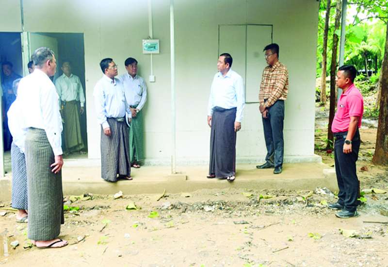 ပြည်ထဲရေးဝန်ကြီးဌာန ပြည်ထောင်စုဝန်ကြီး ဒုတိယဗိုလ်ချုပ်ကြီး ထွန်းထွန်းနောင်သည် ယနေ့ နံနက်ပိုင်းတွင် မြန်မာနိုင်ငံရဲတပ်ဖွဲ့ ရဲချုပ်ဒုတိယရဲဗိုလ်ချုပ်ကြီး ဝင်းဇော်မိုး၊ ပြည်ထဲရေးဝန်ကြီးဌာန အမြဲတမ်းအတွင်းဝန် ဦးခိုင်ထွန်းဦးနှင့်အတူ ပြည်ထဲရေးဝန်ကြီးဌာန ပြည်ထောင်စုဝန်ကြီးရုံး ပြန်လည်ပြုပြင်နေမှု အခြေအနေများနှင့် ပြည်ထဲရေးဝန်ကြီးဌာန ကွပ်ကဲမှုအောက်ရှိ ဝန်ကြီးရုံး၊ တပ်ဖွဲ့၊ ဦးစီးဌာနများမှ ငလျင်ဒဏ်သင့်ဝန်ထမ်းနှင့် မိသားစုဝင်များ ပြောင်းရွှေ့နေထိုင်နိုင်ရေး ယာယီဘာရှာအဆောက်အအုံများနှင့် CONTAINER HOUSE များ နေရာချထား တပ်ဆင်တည်ဆောက်ပြီးစီးမှုအခြေအနေများအား ကွင်းဆင်းကြည့်ရှုစစ်ဆေးသည်။