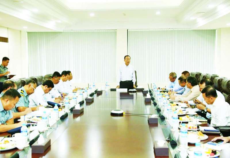 ဟိုတယ်နှင့်ခရီးသွားလာရေးဝန်ကြီးဌာန ပြည်ထောင်စုဝန်ကြီး ဦးကျော်စိုးဝင်းသည် ယမန်နေ့က တာချီလိတ်မြို့ရှိ ဝမ်းဂျီဝမ်းဟိုတယ်၌ မြန်မာနိုင်ငံဟိုတယ်ဆိုင်ရာ လုပ်ငန်းရှင်များအသင်း(ရွှေတြိဂံဇုန်)မှ တာဝန်ရှိသူများ၊ ဟိုတယ်လုပ်ငန်းရှင်များနှင့်တွေ့ဆုံသည်။
