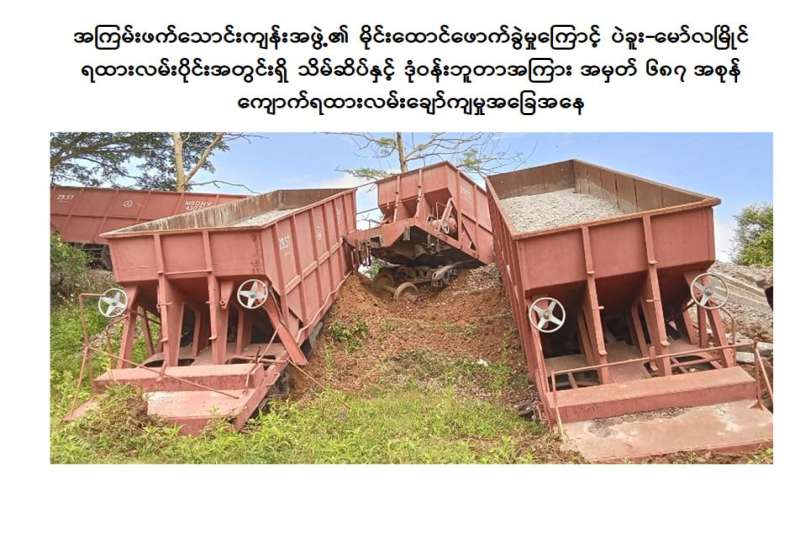 NUG ၊ CRPH တို့၏ လက်ဝေခံ PDF အမည်ခံအကြမ်းဖက်သမားများသည် တိုင်းပြည်တည်ငြိမ်အေးချမ်းမှုနှင့် တရားဥပဒေစိုးမိုးမှုကို ပျက်ပြားစေရန်ရည်ရွယ်ချက်ဖြင့် ရုံးဌာနအဆောက်အဦများ၊ စာသင်ကျောင်းများ၊ အများပြည်သူ နေထိုင်လျက်ရှိသောနေအိမ်များ၊ လမ်း၊ တံတားများအား မီးရှို့ဖျက်ဆီးခြင်း၊ မိုင်းထောင်ဖောက်ခွဲခြင်းများ အလစ်အငိုက်လုပ်ဆောင် လျက်ရှိသည်။