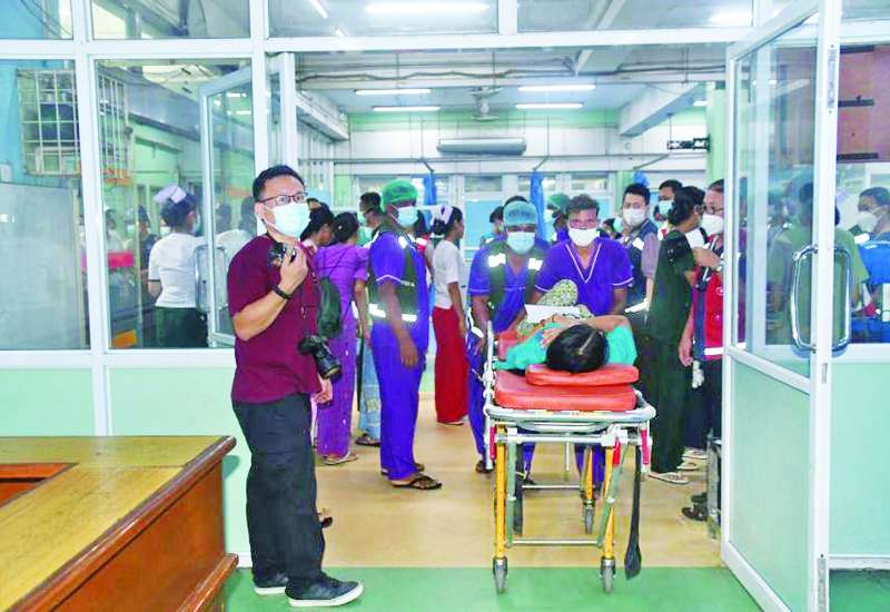 ရန်ကုန်ပြည်သူ့ဆေးရုံကြီး၏ သဘာဝဘေးအန္တရာယ်နှင့် လူအများထိခိုက်ဒဏ်ရာရရှိမှုများအတွက် ကုသမှုဆောင်ရွက်ပေးနိုင်ရေး Mass Causality Management Plan (၂၀၂၅) အတိုင်း ဆေးရုံရှိအဆောက်အအုံများ ပျက်စီးမှုများရှိနိုင်ခြင်းအပါအဝင် case scenario များဖြင့် သရုပ်ပြလေ့ကျင့်ခြင်းကို မေ ၂၃ ရက်က ရန်ကုန်ပြည်သူ့ဆေးရုံကြီး အရေးပေါ်ဌာန၌ ပြုလုပ်ခဲ့သည်။