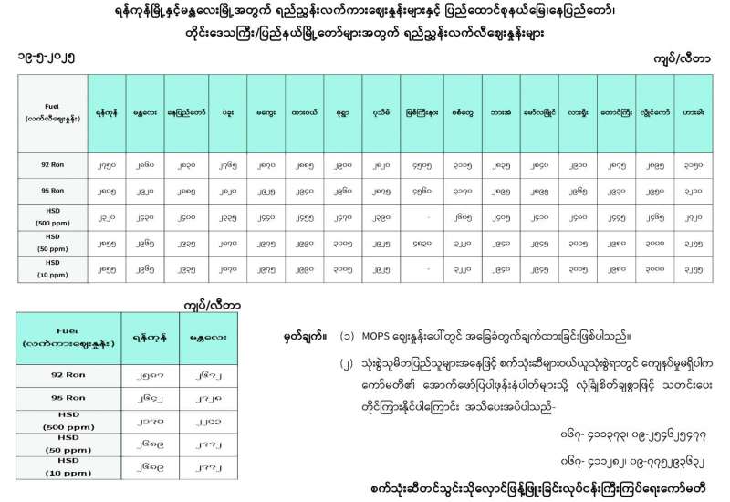 ရန်ကုန်မြို့နှင့် မန္တလေးမြို့အတွက် ရည်ညွှန်းလက်ကားဈေးနှုန်းများနှင့် ပြည်ထောင်စုနယ်မြေ နေပြည်တော်၊ တိုင်းဒေသကြီး/ပြည်နယ် မြို့တော်များအတွက် ရည်ညွှန်းလက်လီဈေးနှုန်းများ