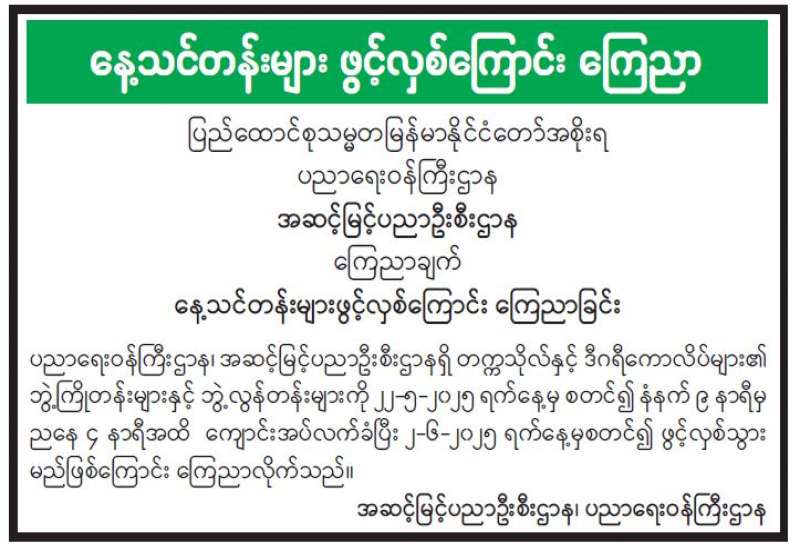 နေ့သင်တန်းများ ဖွင့်လှစ်ကြောင်း ကြေညာ