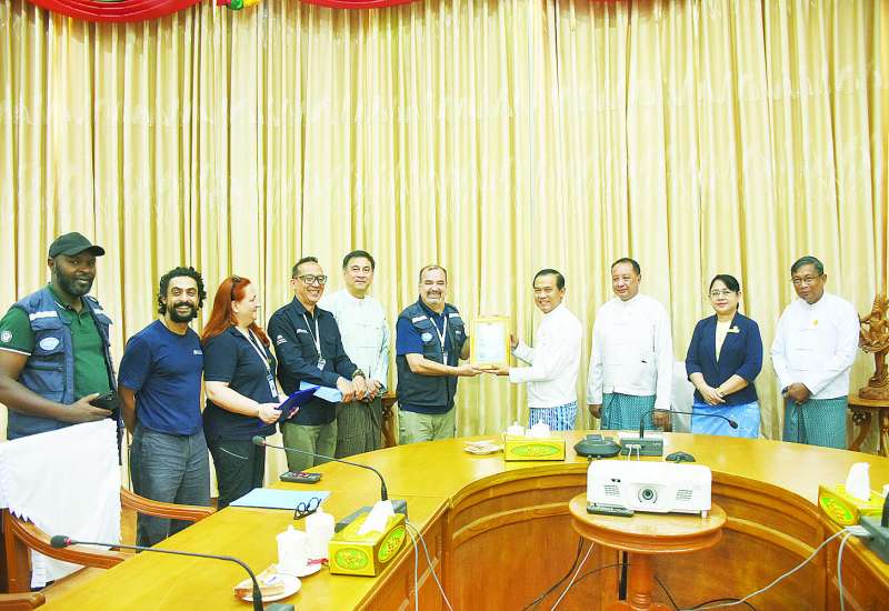 အရေးပေါ်ကျန်းမာရေးစောင့်ရှောက်မှုလုပ်ငန်းများ ပြီးဆုံး၍ ပြန်လည်ထွက်ခွာမည့် အမေရိကန်အခြေစိုက် International Medical Corps (IMC)အရေးပေါ်ဆေးအဖွဲ့အား ဂုဏ်ပြုနှုတ်ဆက်ပွဲအခမ်းအနားကို ယနေ့နံနက်ပိုင်းတွင် ကျန်းမာရေးဝန်ကြီးဌာန အစည်းအဝေးခန်း၌ ကျင်းပရာ ကျန်းမာရေးဝန်ကြီးဌာန ဒုတိယဝန်ကြီး ဒေါက်တာအေးထွန်းက အမျိုးသားသဘာဝဘေးအန္တရာယ်ဆိုင်ရာစီမံခန့်ခွဲမှုကော်မတီ၏ ကျန်းမာရေးဆပ်ကော်မတီဥက္ကဋ္ဌကိုယ်စား တက်ရောက်သည်။