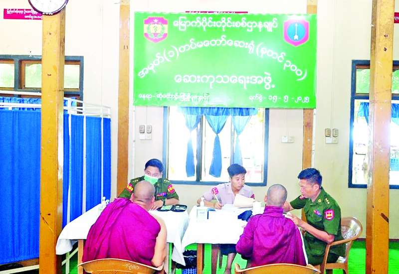 ကချင်ပြည်နယ် မြစ်ကြီးနားမြို့ပေါ်ရှိ သံဃာတော်များအား ယနေ့နံနက်ပိုင်းတွင် မြောက်ပိုင်းတိုင်း စစ်ဌာနချုပ်နယ်လှည့်ဆေးကုသရေးအဖွဲ့က အဆိုပါမြို့ပေါ်ရှိ ဆုတောင်းပြည့်ကျောင်းတိုက်အတွင်း၌ ကျန်းမာရေးစောင့်ရှောက်မှုလုပ်ငန်းများ ဆောင်ရွက်ပေးသည်။