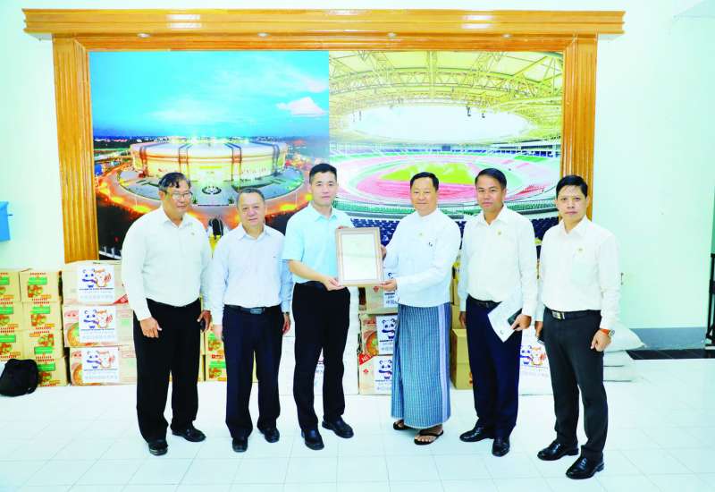 မြန်မာနိုင်ငံဆိုင်ရာ တရုတ်ပြည်သူ့သမ္မတနိုင်ငံ သံရုံးမှ အားကစားနှင့်လူငယ်ရေးရာဝန်ကြီးဌာနတွင် အသုံးပြုရန်အတွက် ရုံးလုပ်ငန်းသုံးပစ္စည်းများနှင့် ထောက်ပံ့ပစ္စည်းများ ပေးအပ်လှူဒါန်းပွဲအခမ်းအနားကို ယနေ့ နံနက်ပိုင်းတွင် နေပြည်တော် ရုံးအမှတ် (၃၁) ရှိ အားကစားနှင့်လူငယ်ရေးရာဝန်ကြီးဌာန ဧည့်တွေ့ခန်းမ၌ ကျင်းပသည်။