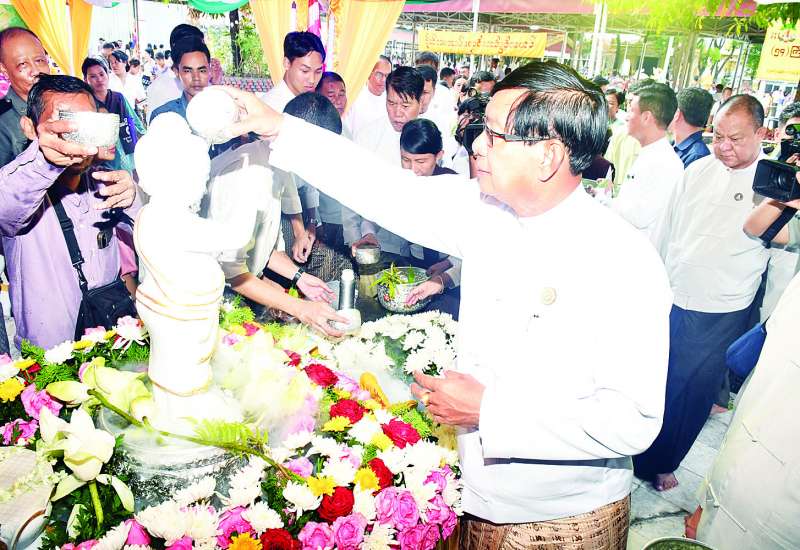 ဗုဒ္ဓဘာသာမြန်မာလူမျိုးတို့၏ ၁၂ လရာသီပွဲတော်တွင် တစ်ခုအပါအဝင်ဖြစ်သည့် မြန်မာသက္ကရာဇ် ၁၃၈၇ ခုနှစ်၊ ကဆုန်လပြည့်(ဗုဒ္ဓနေ့)ဖြစ်သော ယနေ့တွင် ကျရောက်သည့် ကဆုန်ညောင်ရေ သွန်းပွဲတော်တွင်ပြည်ထောင်စုနယ်မြေ နေပြည်တော် မာရဝိဇယဗုဒ္ဓဥယျာဉ် ပရိဝုဏ်တော်အတွင်းရှိ မဟာဗောဓိညောင်ပင်တော်အား ကဆုန်ညောင်ရေသွန်းလောင်းပူဇော်ခြင်း မင်္ဂလာအခမ်းအနားကို ယနေ့ညနေပိုင်းက ကျင်းပပြုလုပ်ရာ နိုင်ငံတော်စီမံအုပ်ချုပ်ရေးကောင်စီဥက္ကဋ္ဌ နိုင်ငံတော်ဝန်ကြီးချုပ် ဗိုလ်ချုပ်မှူးကြီးမင်းအောင်လှိုင်နှင့်ဇနီး ဒေါ်ကြူကြူလှတို့က မဟာဗောဓိညောင်ပင်တော်ကို ညောင်ရေသွန်းလောင်းပူဇော်ကြသည်။