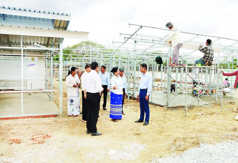 သမဝါယမနှင့်ကျေးလက်ဖွံ့ဖြိုးရေးဝန်ကြီးဌာန ပြည်ထောင်စုဝန်ကြီး ဦးလှမိုးသည် ညွှန်ကြားရေးမှူးချုပ်များနှင့်အတူ ယနေ့နံနက်ပိုင်းက ငလျင်ဒဏ်သင့်ခဲ့သည့် ဝန်ထမ်းများ ယာယီဘာရှာလိုင်းခန်းများတွင် ပြောင်းရွှေ့နေထိုင်မှုအခြေအနေများနှင့် ယာယီဘာရှာလိုင်းခန်းများ တည်ဆောက်နေမှုအခြေအနေကို ကြည့်ရှုစစ်ဆေးသည်။