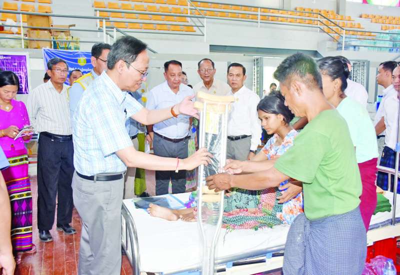 ကျန်းမာရေးဝန်ကြီးဌာန ပြည်ထောင်စုဝန်ကြီး ပါမောက္ခဒေါက်တာသက်ခိုင်ဝင်းသည် ယနေ့မွန်းလွဲပိုင်းတွင် ဒုတိယဝန်ကြီး ပါမောက္ခဒေါက်တာအေးထွန်း၊ ညွှန်ကြားရေးမှူးချုပ်များနှင့် တာဝန်ရှိသူများလိုက်ပါလျက် နေပြည်တော်ပြည်သူ့ဆေးရုံကြီး (ခုတင်-၁၀၀၀) ၊ အရိုး ကုသဆောင်(၂)သို့ သွားရောက်၍ ငလျင်ဘေးသင့်လူနာများနှင့် ထိခိုက်ဒဏ်ရာရရှိသူ လူနာများအား တစ်ဦးချင်း ရင်းရင်းနှီးနှီးနှုတ်ဆက်၍ အားပေးစကားများ ပြောကြားကာ ခြေ၊ လက်၊ ကျောရိုး ထိခိုက်ဒဏ်ရာရရှိသူများအား လိုအပ်သော ချိုင်းထောက်များ၊ လေးချောင်းထောက်များ ထောက်ပံ့ပေးအပ်ပြီးဆေးရုံတွင် တာဝန်ထမ်းဆောင်နေသော ဆရာဝန်များ၊ သူနာပြုများနှင့် ဝန်ထမ်းများ နေရေးထိုင်ရေး အဆင်ပြေစေရန် လိုအပ်သည်များပံ့ပိုးစီစဉ် ဆောင်ရွက်ပေးသည်။
