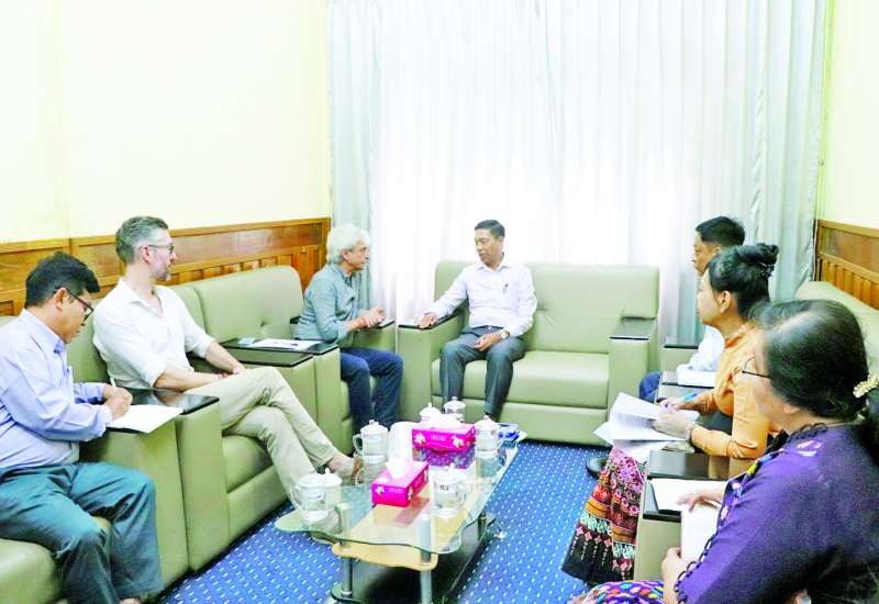 လူမှုဝန်ထမ်း၊ ကယ်ဆယ်ရေးနှင့်ပြန်လည်နေရာချထားရေးဝန်ကြီးဌာန ပြည်ထောင်စုဝန်ကြီး ဒေါက်တာစိုးဝင်းသည် နိုင်ငံခြားရေးဝန်ကြီးဌာန ဒုတိယဝန်ကြီး ဦးလွင်ဦးနှင့်အတူ ကမ္ဘာ့စားနပ်ရိက္ခာအစီအစဉ် (WFP)၏ တာဝန်ခံညွှန်ကြားရေးမှူး Mr. Paolo Mattei ဦးဆောင်သည့် ကိုယ်စားလှယ်အဖွဲ့အား ယနေ့နံနက်ပိုင်းတွင် အဆိုပါ ဝန်ကြီးဌာန၏ သဘာဝဘေးအန္တရာယ်ဆိုင်ရာစီမံခန့်ခွဲမှုဗဟိုဌာန (Disaster Management Center- DMC)၌တွေ့ဆုံရာ တာဝန်ရှိသူများ တက်ရောက်ကြသည်။