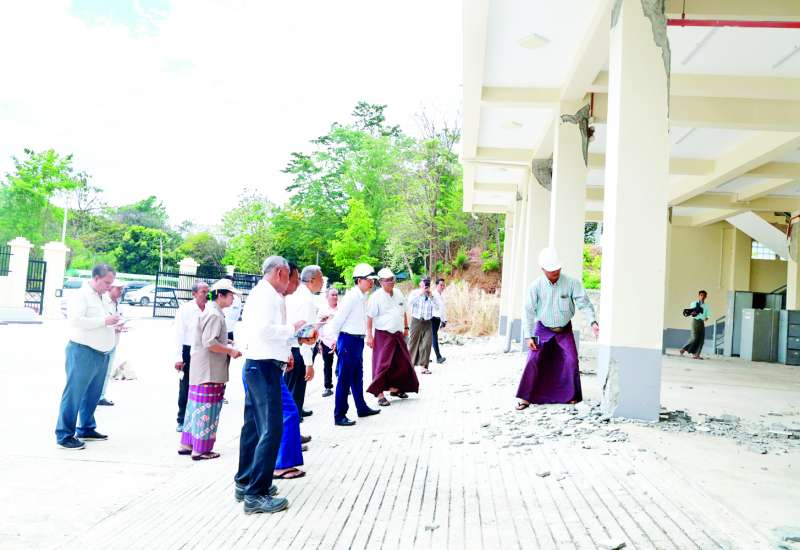 အဆောက်အအုံများ ပြန်လည်ပြုပြင်အသုံးပြုရေးနှင့် အသစ်တည်ဆောက်ရေး ကြီးကြပ်မှုကော်မတီဥက္ကဋ္ဌ နိုင်ငံတော် စီမံအုပ်ချုပ်ရေးကောင်စီအဖွဲ့ဝင် ဒုတိယဝန်ကြီးချုပ်နှင့် ကာကွယ်ရေးဝန်ကြီးဌာန ပြည်ထောင်စုဝန်ကြီး ဗိုလ်ချုပ်ကြီးမောင်မောင်အေးနှင့် အဖွဲ့ဝင်များသည် ယနေ့နံနက်ပိုင်းတွင် ငလျင်ဒဏ်ကြောင့် ထိခိုက်ပျက်စီးခဲ့ရသည့် ပြည်ထောင်စု တရားလွှတ်တော်ချုပ်ရုံးနှင့် နိုင်ငံတော်ဖွဲ့စည်းပုံအခြေခံဥပဒေဆိုင်ရာခုံရုံးတို့သို့ သွားရောက်ကြည့်ရှုစစ်ဆေး၍ ယာယီရုံးဖွင့်လှစ်ထားရှိမှု အခြေအနေအား တာဝန်ရှိသူများနှင့် ပေါင်းစပ်ညှိနှိုင်းဆောင်ရွက်ပေးခဲ့ကြောင်း သိရသည်။
