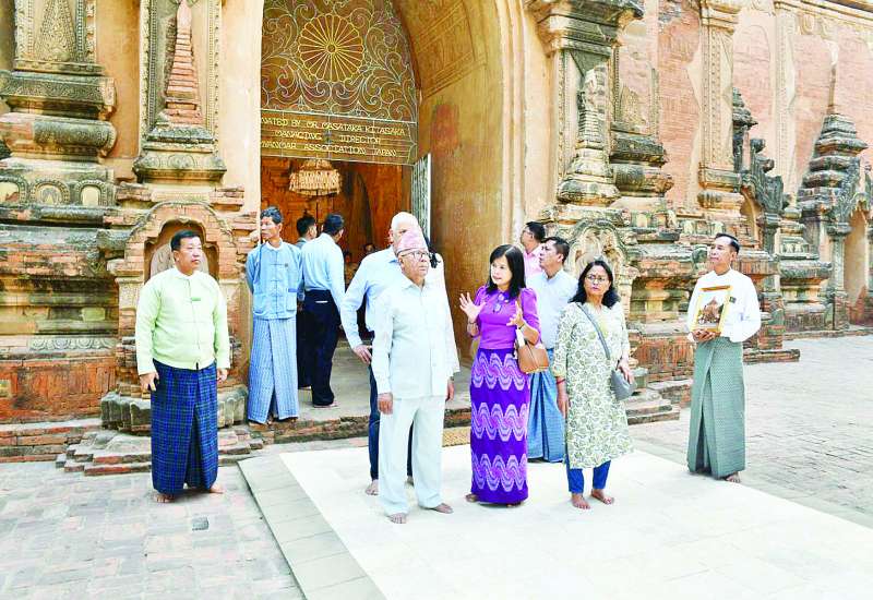 မတ် ၂၁ ရက်က နေပြည်တော်၌ ကျင်းပသော ၂၀၂၅ အလွန် ဗဟုဝင်ရိုးကမ္ဘာတွင် မြန်မာနိုင်ငံကြုံတွေ့လာရမည့် စိန်ခေါ်မှုများနှင့်အခွင့်အလမ်းများ သုံးသပ်ဆွေးနွေးပွဲတက်ရောက်ခဲ့သည့် နီပေါဝန်ကြီးချုပ်ဟောင်း Mr. Madhav Kumar Nepal နှင့် အဖွဲ့သည် ယနေ့နံနက်ပိုင်းတွင် ပုဂံရှေးဟောင်းယဉ်ကျေးမှုနယ်မြေရှိ ထီးလိုမင်းလိုဘုရားသို့ သွားရောက်ဖူးမြော်ကြသည်။