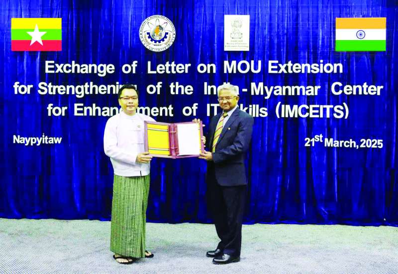 မြန်မာနိုင်ငံနှင့် အိန္ဒိယနိုင်ငံအကြား သတင်းအချက်အလက်နည်းပညာ (IT) ကဏ္ဍ ပူးပေါင်းမြှင့်တင်ရေးဆိုင်ရာနားလည်မှု စာချွန်လွှာ (MoU) သက်တမ်းတိုးမြှင့်စာလဲလှယ်ခြင်း အခမ်းအနားကို ယမန်နေ့ မွန်းလွဲပိုင်းက သိပ္ပံနှင့်နည်းပညာဝန်ကြီးဌာန ဝန်ကြီးရုံး၌ကျင်းပသည်။