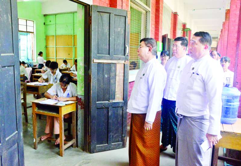 ပညာရေးဝန်ကြီးဌာန ပြည်ထောင်စုဝန်ကြီး ဒေါက်တာညွန့်ဖေသည် ရန်ကုန်တိုင်းဒေသကြီး၀န်ကြီးချုပ် ဦးစိုးသိန်းနှင့် အစိုးရအဖွဲ့၀င်များ၊ ပညာရေး၀န်ကြီးဌာန ဒုတိယဝန်ကြီး ဦးနေမျိုးလှိုင်၊ တာ၀န်ရှိသူများနှင့်အတူ ယနေ့နံနက်ပိုင်းတွင် ရန်ကုန်မြို့ဗဟန်းမြို့နယ် အမှတ် (၂) အခြေခံပညာ အထက်တန်းကျောင်းရှိ စာစစ်ဌာနသို့ သွားရောက်၍ ၂၀၂၄-၂၀၂၅ ပညာသင်နှစ် တက္ကသိုလ်ဝင်စာမေးပွဲ ဆဋ္ဌမနေ့တွင် ဇီ၀ဗေဒနှင့် ဘောဂဗေဒဘာသာရပ်ဖြေဆိုကြမည့် ကျောင်းသား ကျောင်းသူများကို ရင်းရင်းနှီးနှီးတွေ့ဆုံအားပေးစကား ပြောကြားသည်။