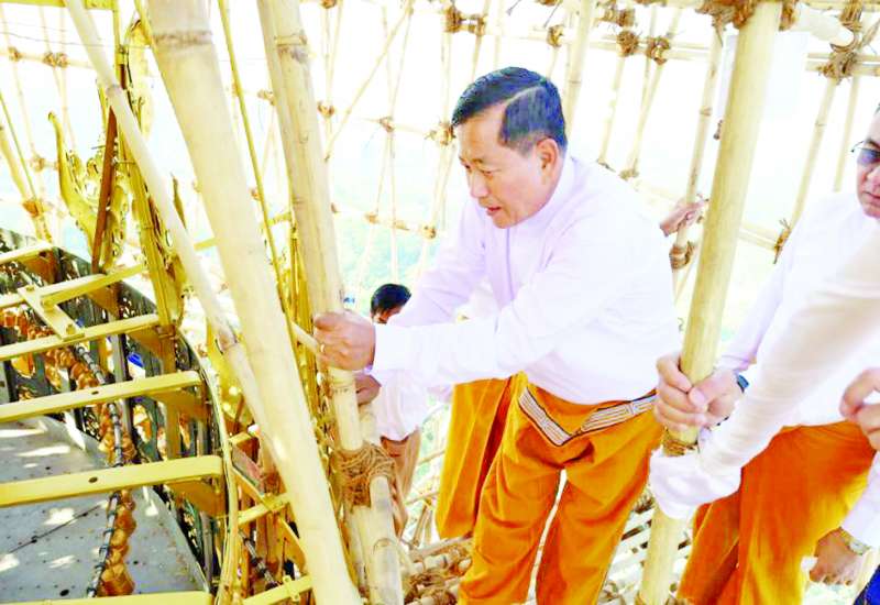 သာသနာရေးနှင့်ယဉ်ကျေးမှုဝန်ကြီးဌာန ဒုတိယဝန်ကြီး ဦးအေးထွန်းသည် တာဝန်ရှိသူများနှင့်အတူ မတ် ၁၅ ရက်နံနက်ပိုင်းတွင် ရွှေတိဂုံစေတီတော်မြတ်ကြီး လုံးတော်ပြည့်ရွှေသင်္ကန်း ကပ်လှူပြီးစီးမှု၊ စိန်ဖူးတော်၊ ငှက်မြတ်နားတော်၊ ထီးတော်နှင့် ဆပ်သွားဖူးတော်ရှိ ရတနာပစ္စည်းများ ရောင်တော်ဖွင့်ခြင်းလုပ်ငန်းပြီးစီးမှုတို့ကို ကြည့်ရှုစစ်ဆေးခဲ့ပြီး ငြမ်းစေတီမီးဘေးအန္တရာယ်ကင်းရှင်းရေး၊ မီးဘေးကာကွယ်ရေးနှင့် လုံခြုံရေးကိစ္စရပ်များကို အထူးအလေးထား ကြပ်မတ်ဆောင်ရွက်ရန် မှာကြားခဲ့သည်။