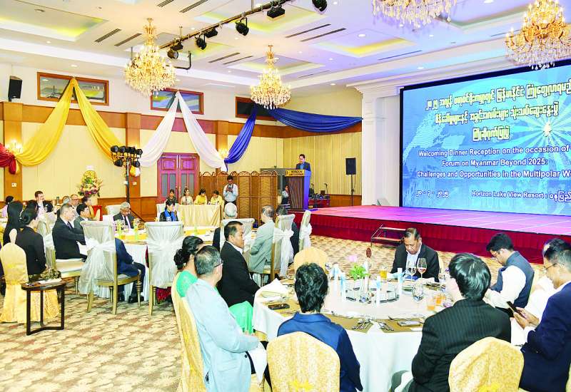 ပြန်ကြားရေးဝန်ကြီးဌာန ပြည်ထောင်စုဝန်ကြီး ဦးမောင်မောင်အုန်းသည် ပြန်ကြားရေးဝန်ကြီးဌာနက ကြီးမှူး၍ မြန်မာ့ပုံရိပ်ဖော်ညွှန်းရေးအဖွဲ့ (Myanmar Narrative Think Tank) က စီစဉ်ကျင်းပသည့် “၂၀၂၅ အလွန် ဗဟုဝင်ရိုးကမ္ဘာတွင် မြန်မာနိုင်ငံကြုံတွေ့လာရမည့် စိန်ခေါ်မှုများနှင့် အခွင့်အလမ်းများ” သုံးသပ်ဆွေးနွေးပွဲသို့ တက်ရောက်လာကြသော နိုင်ငံတကာမှ ပထဝီစီးပွားရေးနှင့် ပထဝီနိုင်ငံရေးဆိုင်ရာ ကျွမ်းကျင်ပညာရှင်များ၊ လေ့လာသုံးသပ်သူများအား ယနေ့ညနေပိုင်းတွင် နေပြည်တော်ရှိ Horizon Lakeview Resort ၌ ညစာဖြင့် တည်ခင်းဧည့်ခံသည်။