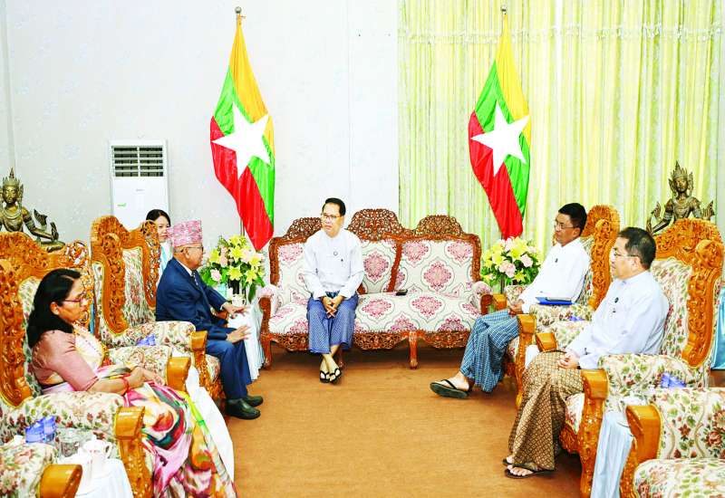 ပြန်ကြားရေးဝန်ကြီးဌာန ပြည်ထောင်စုဝန်ကြီး ဦးမောင်မောင်အုန်းသည် “၂၀၂၅ အလွန် ဗဟုဝင်ရိုးကမ္ဘာတွင် မြန်မာနိုင်ငံ ကြုံတွေ့လာရမည့် စိန်ခေါ်မှုများနှင့် အခွင့်အလမ်းများ” သုံးသပ်ဆွေးနွေးပွဲတက်ရောက်ရန် ရောက်ရှိနေသည့် နီပေါဝန်ကြီးချုပ်ဟောင်း Mr. Madhav Kumar Nepal နှင့် ထိုင်းနိုင်ငံခြားရေးဝန်ကြီးဌာန ဒုတိယဝန်ကြီးဟောင်း Mr. Sihasak PHUANG-KETKEOW တို့အား ယနေ့နံနက်ပိုင်းတွင် နေပြည်တော်ရှိ ပြန်ကြားရေးဝန်ကြီးဌာန အစည်းအဝေးခန်းမ၌ သီးခြားစီလက်ခံတွေ့ဆုံသည်။