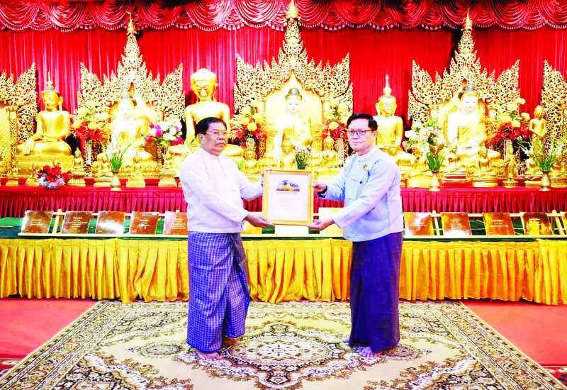 နိုင်ငံခြားရေးဝန်ကြီးဌာနနှင့် ပြည်ပရှိမြန်မာသံရုံး၊ မြန်မာအဖွဲ့ရုံး၊ မြန်မာကောင်စစ်ဝန်ချုပ်ရုံးများ၏ ဝန်ထမ်းများနှင့် မိသားစုဝင်များက ရွှေတိဂုံစေတီတော်မြတ်ကြီးအား ကပ်လှူသည့် ရွှေပြားသင်္ကန်းတော်ခြောက်ကျပ်သား နှစ်ချပ်နှင့် တစ်ကျပ်သား ၁၃ ချပ်တို့အတွက် အလှူငွေကျပ် ၆၂,၅၀၀,၀၀၀/- (ကျပ်ခြောက်ရာနှစ်ဆယ့်ငါးသိန်းတိတိ) ကို ဒုတိယဝန်ကြီးချုပ်နှင့် နိုင်ငံခြားရေးဝန်ကြီးဌာန ပြည်ထောင်စုဝန်ကြီး ဦးသန်းဆွေက ရွှေတိဂုံစေတီတော်ဂေါပကအဖွဲ့ထံ ပေးအပ်လှူဒါန်းသည့် အခမ်းအနားကို ယနေ့နံနက် ၈ နာရီတွင် ရွှေတိဂုံစေတီတော်တောင်ဘက်မုခ်ရှိ ရှေးဟောင်းတန်ဆောင်း၌ ကျင်းပသည်။