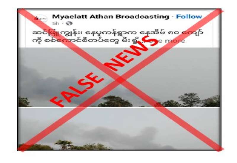 မကွေးတိုင်းဒေသကြီး၊ စလင်းမြို့နယ်၊ ဆင်ဖြူကျွန်းမြို့၊ နေပူကန်ကျေးရွာရှိ နေအိမ် ၈၀ ကျော်ကို လုံခြုံရေးတပ်ဖွဲ့ဝင်များက မီးရှို့ဖျက်ဆီးနေကြောင်း တရားမဝင်ပြည်ဖျက်မီဒီယာများက သတင်းတု၊ သတင်းအမှားများ မဟုတ်မမှန် ရေးသားဖြန့်ဝေလျက်ရှိကြောင်း တွေ့ရှိရသည်။