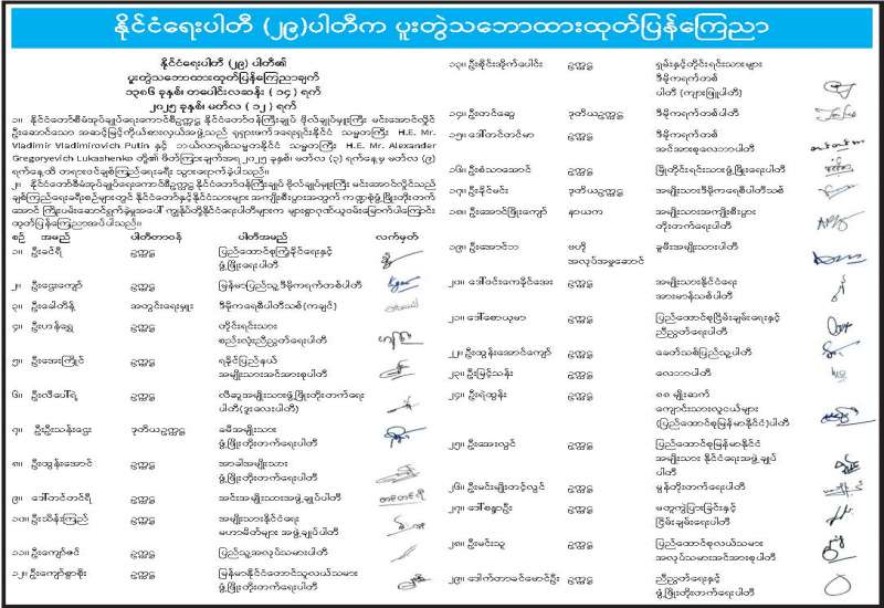 နိုင်ငံရေးပါတီ (၂၉)ပါတီက ပူးတွဲသဘောထားထုတ်ပြန်ကြေညာ