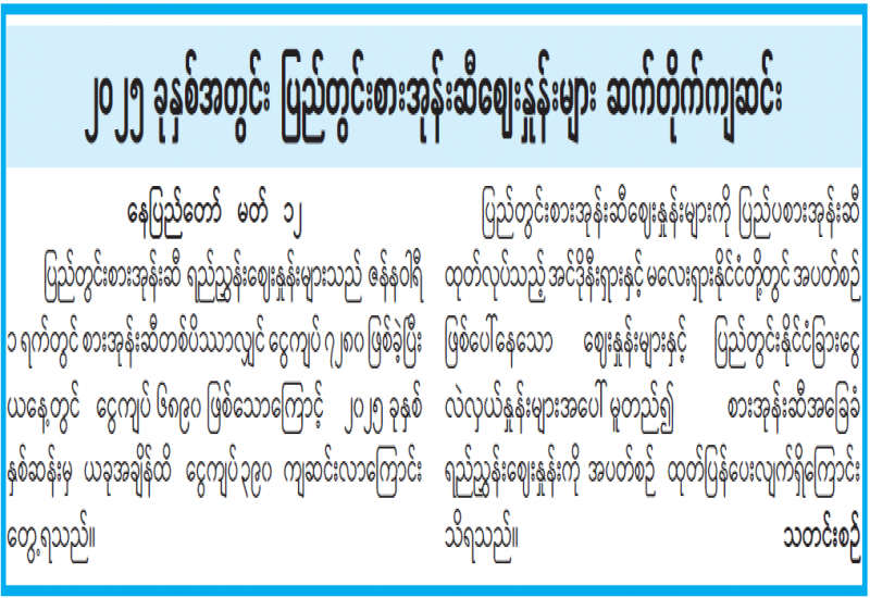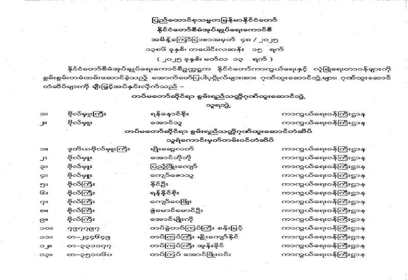 ရန်ကုန်မြို့နှင့် မန္တလေးမြို့အတွက် ရည်ညွှန်းလက်ကားဈေးနှုန်းများနှင့် ပြည်ထောင်စုနယ်မြေ နေပြည်တော်၊ တိုင်းဒေသကြီး/ပြည်နယ် မြို့တော်များအတွက် ရည်ညွှန်းလက်လီဈေးနှုန်းများ