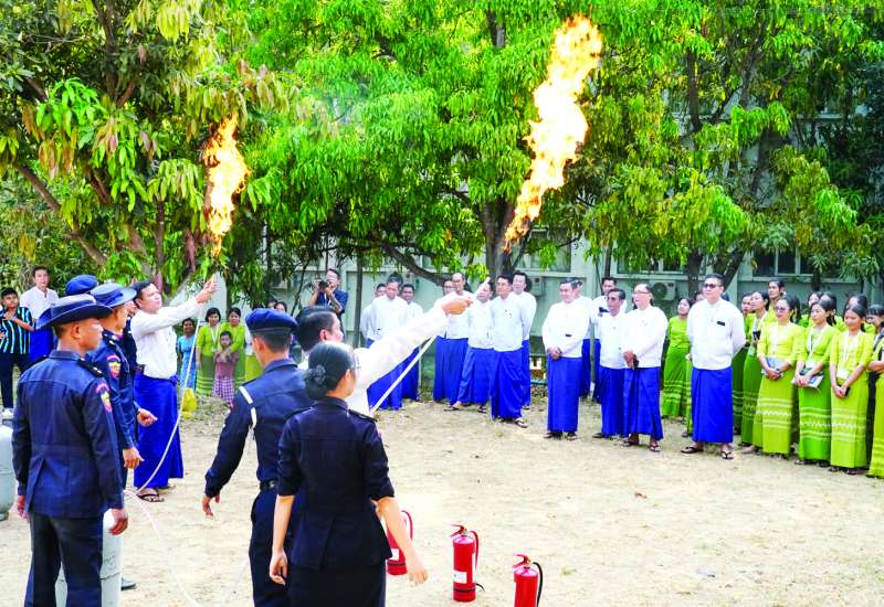 မီးဘေးအန္တရာယ်ကြိုတင်ကာကွယ်ရေး အသိပညာပေးဟောပြောပွဲနှင့် သရုပ်ပြပွဲအခမ်းအနားကို ယနေ့မွန်းလွဲပိုင်းတွင် နေပြည်တော်ရှိ ဟိုတယ်နှင့်ခရီးသွားလာရေးဝန်ကြီးဌာန ကျောက်စိမ်းခန်းမ၌ကျင်းပရာ ဒုတိယဝန်ကြီး ဦးဖြိုးဇော်စိုး ၊ အမြဲတမ်းအတွင်းဝန်၊ ဒုတိယအမြဲတမ်းအတွင်းဝန်နှင့် ဒုတိယညွှန်ကြားရေးမှူးချုပ်များ၊ အရာထမ်း/အမှုထမ်းများ၊ မြန်မာနိုင်ငံ မီးသတ်ဦးစီးဌာနမှတာဝန်ရှိသူများ တက်ရောက်ကြသည်။