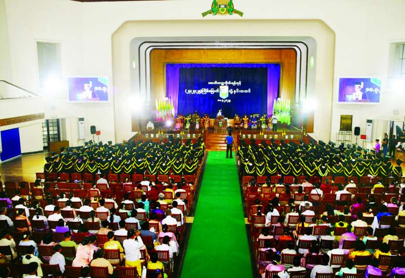 ဆေးဝါးတက္ကသိုလ်(ရန်ကုန်)၏ (၂၃)ကြိမ်မြောက်၊ (၂၄)ကြိမ်မြောက်နှင့် (၂၅) ကြိမ်မြောက် ဘွဲ့နှင်းသဘင်အခမ်းအနားကို ယနေ့နံနက် ၉ နာရီတွင် ရန်ကုန်တက္ကသိုလ် ဘွဲ့နှင်းသဘင်ခန်းမ၌ ကျင်းပသည်။